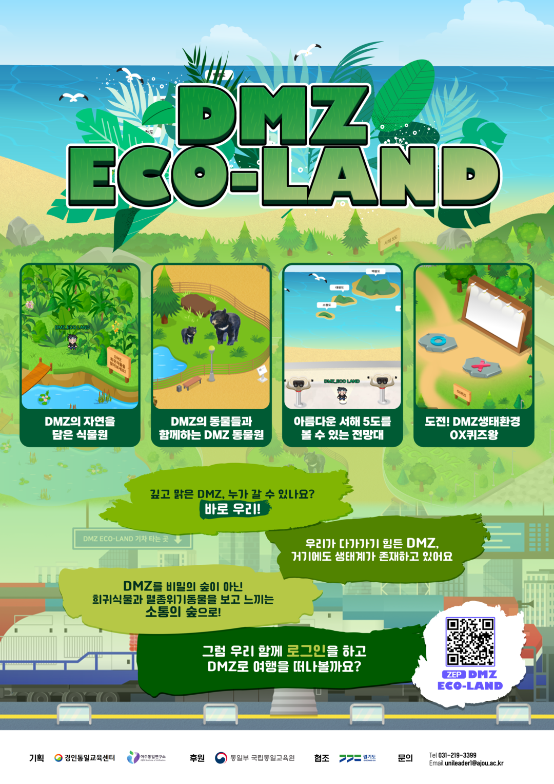 DMZ 에코랜드는 일반인이 쉽게 접근할 수 없는 비무장지대의 생태환경 정보를 담고 있다. 아주대 산하 아주통일연구소·경인통일교육센터가 기획을 맡았고, 경기도 DMZ정책과가 DMZ 인근의 동식물과 실태조사 자료를 제공했다.