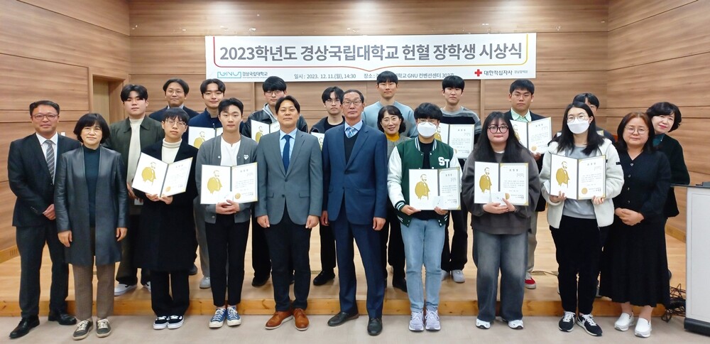 [대학저널 온종림 기자] 경상국립대학교와 경남혈액원이 지난 11일 가좌캠퍼스 GNU컨벤션센터에서 ‘2023년 경상국립대 헌혈장학생 시상식’을 개최했다.