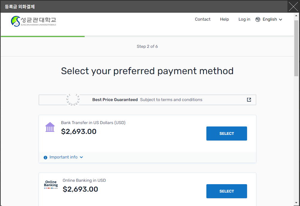 성균관대 등록금 외화 간편결제 화면.