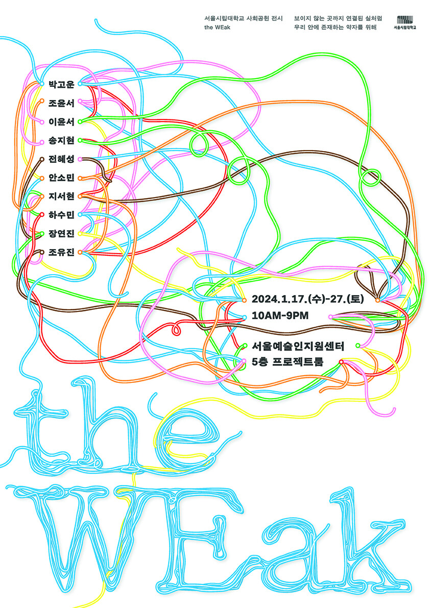 이번 전시는 사람의 약자성이 누구에게나 내재되어 있고, 누구나 약자가 될 수 있다는 점을 강조하고자 기획되었다. 이를 위해 “실”을 소재로 활용하여, 타인을 약자로 구분하지 말고 서로 배려하고 존중하며 살아가야 한다는 메시지를 전달한다.
