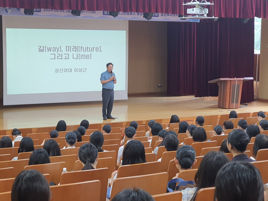 이성근 성신여대 총장은 특강을 통해 “학생들이 대학 생활이라는 제한된 시간 동안 각자 선호하는 것을 형성하고 자신의 길을 찾을 수 있는 문을 열어주고 싶다”고 말하며 고교생들을 응원했다.
