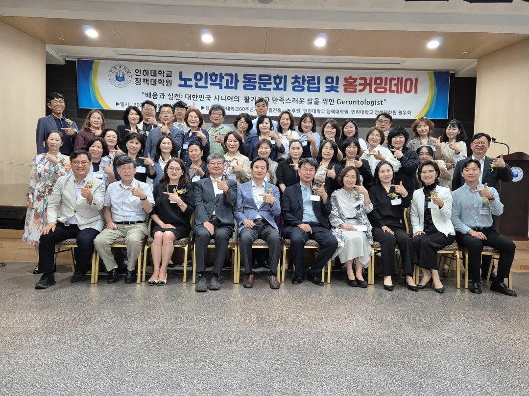 인하대 노인학과 동문회 창립·홈커밍데이 행사는 노인학과 동문회가 주최하고 정책대학원, 원우회가 후원했다. 행사에는 노인학과 졸업생과 재학생, 변병설 인하대 정책대학원장, 김진영 노인학과 주임교수 등이 참석했다.