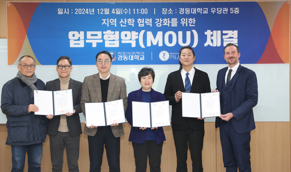 [대학저널 온종림 기자] 경동대학교가 4일 (주)모션케어컴퍼니와 산학협력 강화를 위해 협약을 체결했다. 경기도 양주 메트로폴캠퍼스에서 진행된 협약식에는 경동대 박현욱 산학협력단장과 지용진 대표 등 양측 인사들 참석했다.