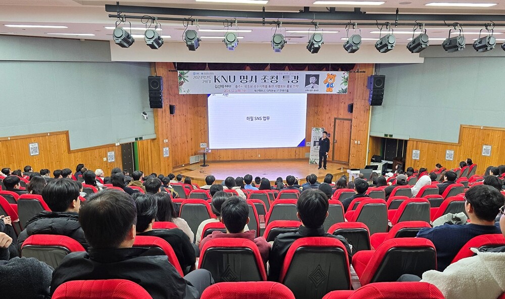 [대학저널 온종림 기자] 국립공주대학교 교육혁신본부 교양교육센터가 지난 3일 예산캠퍼스 컨벤션홀에서 충주시 홍보맨 김선태 주무관을 초청해 ‘2024학년도 2학기 KNU 명사 초청 특강’을 진행했다.