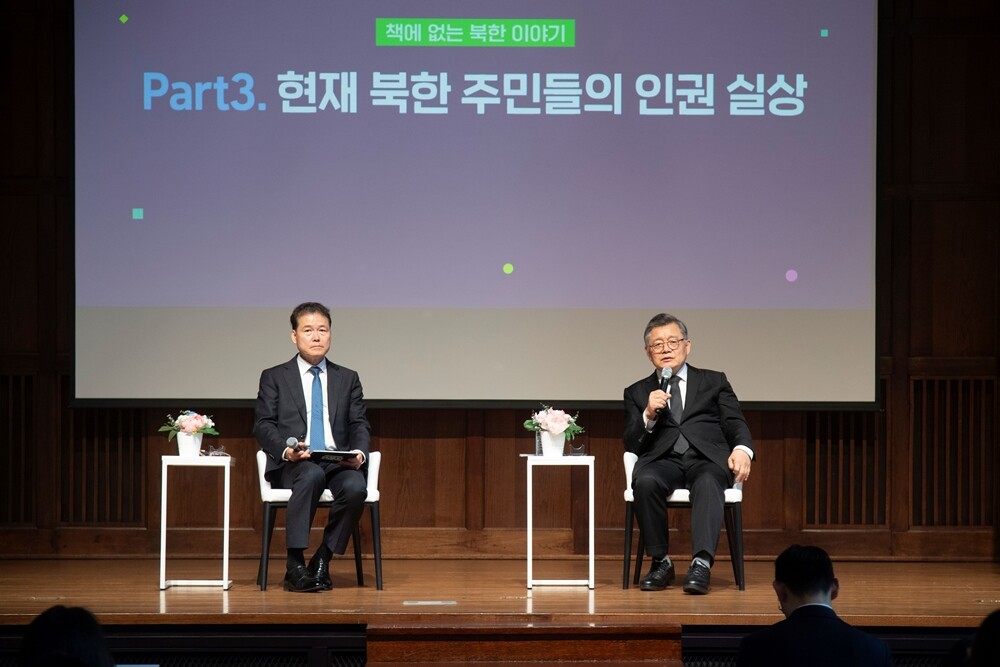 강연 후에는 북한에 억류됐다가 지난 2017년 풀려난 캐나다 국적의 임현수 목사도 참석해 김 장관과 억류 당시 상황과 북한의 실상에 대한 대화를 나눴다. 임 목사는 1990년대부터 캐나다 현지 교회를 통해 북한 선교활동을 진행하던 중 북한 정권의 폭력성을 비판하는 설교로 인해 3년 가까이 독방 감금 생활을 했다. 그는 “감옥에서 뼈저리게 느낀 것은 자유의 소중함”이라며 “자유를 잃으면 모든 것을 잃는다는 것을 새기고 통일을 준비하는 젊은이가 되기를 바란다”고 말했다.
