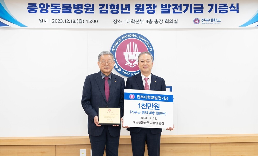 [대학저널 온종림 기자] 기부의 손길이 각박한 세상을 아름답게 비춰주는 계절, 전북대학교에도 오랜 세월 이어진 기부의 손길이 또다시 이어졌다. 올해로 21년째 후학 양성이라는 하나의 목적으로 이어지고 있는 김형년 인천중앙동물병원장(수의대 67학번)의 기부 소식이다.