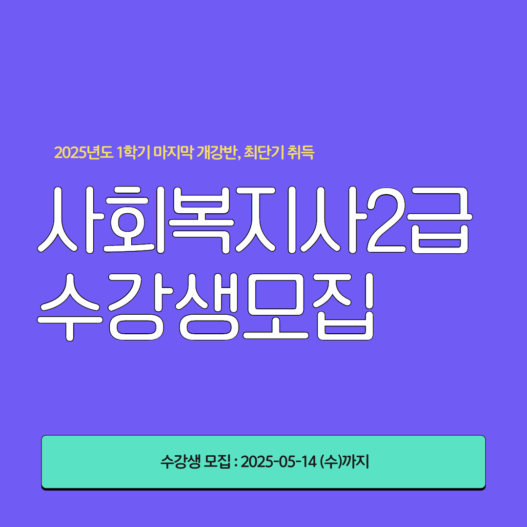한국열린사이버대학교 평생교육원이 사회복지사 2급 자격증 과정의 2025년도 1학기 마지막 개강반 수강생을 모집한다. 이번 개강은 5월 15일(수)로 예정되어 있으며, 특히 1년 중 가장 짧은 기간 안에 자격 취득이 가능한 ‘특별 단기 커리큘럼’으로 운영되어 관심이 집중되고 있다.
