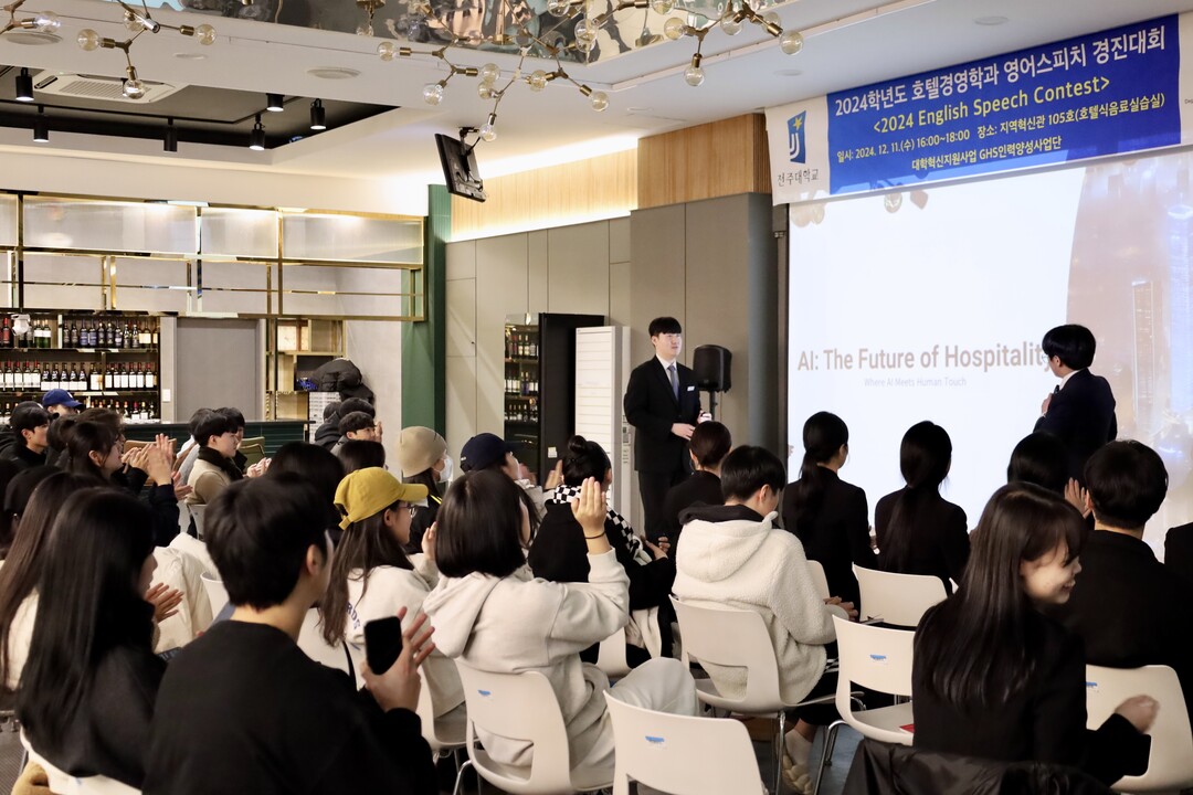 [대학저널 이선용 기자] 전주대학교 호텔경영학과가 주최한 영어스피치 경진대회가 12월 11일 전주대 지역혁신관 호텔식음료실습실에서 성황리에 개최됐다고 12일 밝혔다.