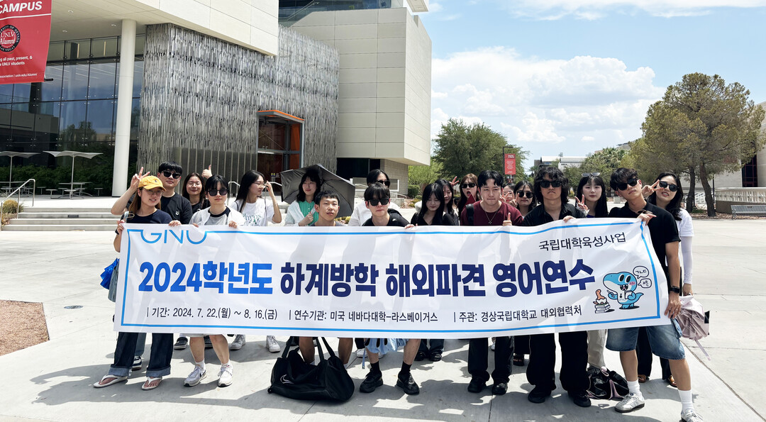 경상국립대 대외협력처는 영어권 교류대학에서 집중 영어연수를 함으로써 재학생의 영어능력 및 글로벌 역량을 강화할 기회를 제공하기 위해 학부 재학생 19명을 미국 네바다대학-라스베이거스에 파견했다. 지난 6월에는 필리핀 라살아라네타대학에 학생 29명을 파견한 바 있다.