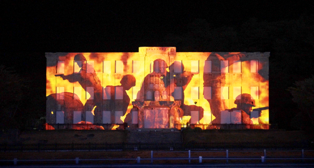 국민대 영상디자인학과 하준수 교수는 이러한 역사적 배경을 가진 철원 노동당사에 ‘모을동빛-걷히는 구름, 비추는 평화’라는 주제로 건물 외경에 미디어아트를 기획했다.