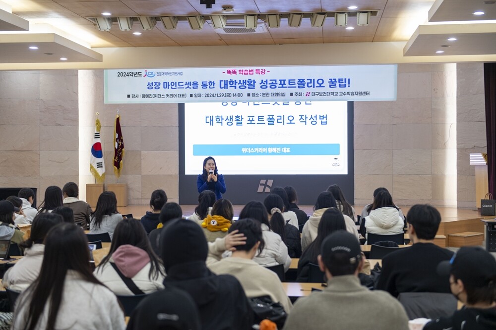 [대학저널 온종림 기자] 대구보건대학교 교수학습원격지원센터가 지난 11월 29일 본관 3층 대회의실에서 재학생들을 대상으로 ‘제2회 똑똑 학습법 특강’을 성황리에 마쳤다. 이번 특강은 학생들의 학습전략과 자기개발 능력을 향상시키기 위해 마련됐으며, 100여 명이 참석했다.