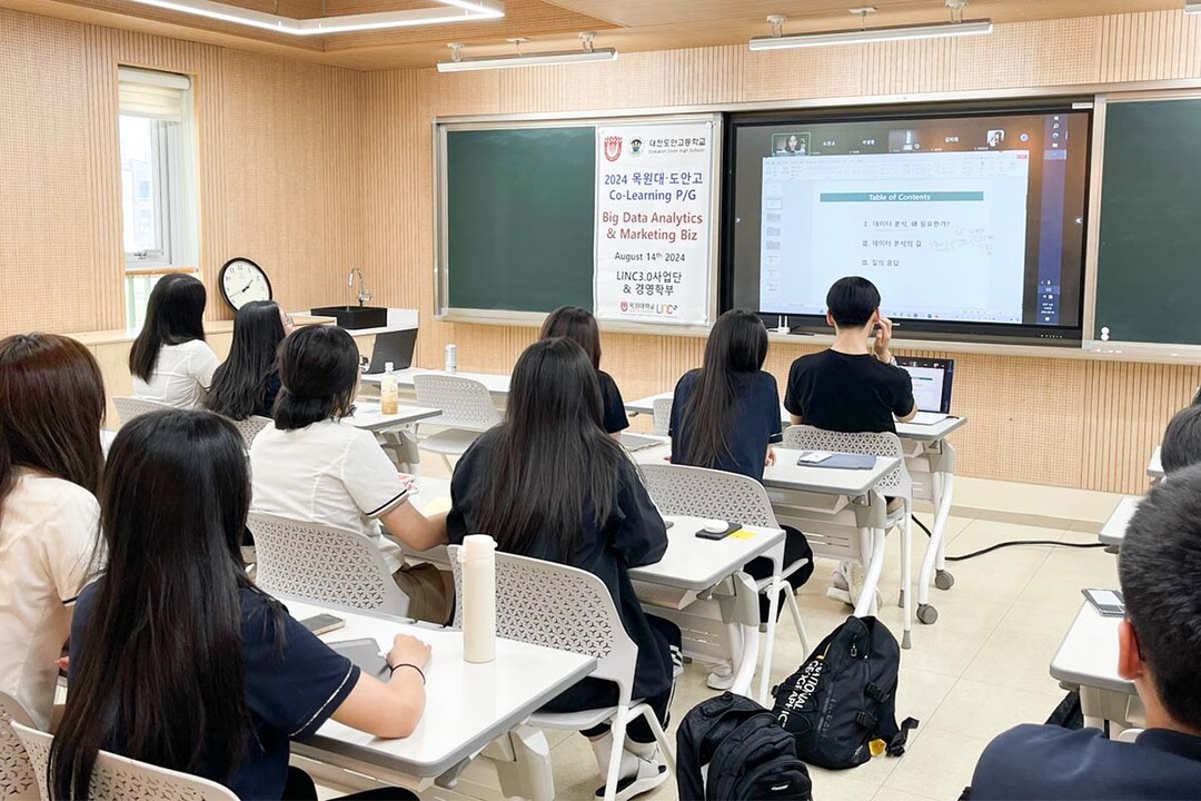 [대학저널 이선용 기자] 목원대학교 경영학부는 LINC 3.0 사업단과 최근 대전도안고등학교에서 마케팅 전문가 교육과정인 ‘2024 마케팅 커뮤니케이션 드라이브’(Marketing Communication Drive)의 첫 시간으로 ‘빅데이터 어낼리틱스와 마케팅 비즈 세미나’를 진행했다고 19일 밝혔다.