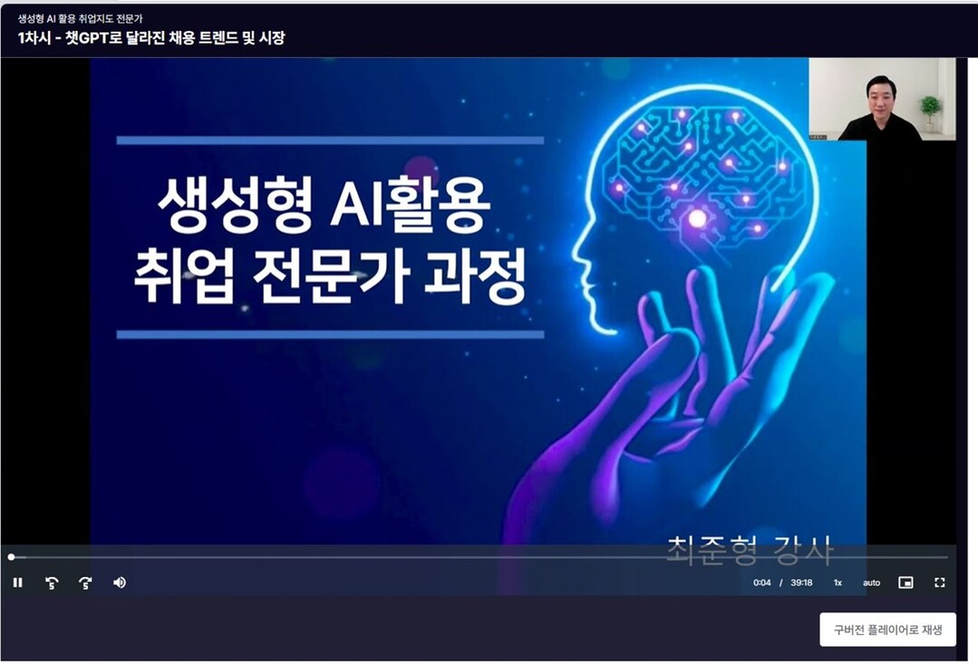 주요 강의내용은 챗GPT로 달라진 채용트렌드 및 시장, 생성형 AI 종류 및 사용방법, 챗GPT자소서 작성법, 챗GPT 실무적용, 챗GPT활용 면접답변 준비 등 총 6차시의 교육이 이뤄졌다.