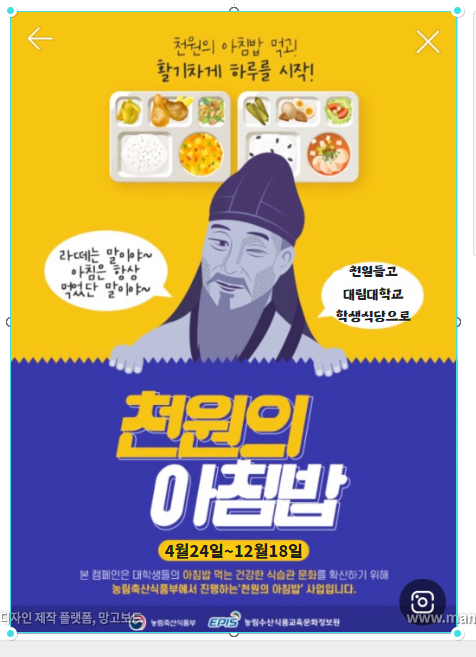 조지연 학생처장은 “대림대 주변은 주거지역으로 형성돼 조식을 해결할 수 있는 상권 형성이 매우 미흡한 상태”라며 “아침식사 결식률이 높은 대학생들의 학업능력 저하 등을 우려해 천원의 아침밥 사업에 적극 참여하여 아침밥 먹기 문화가 확산할 수 있도록 하겠다”고 전했다.