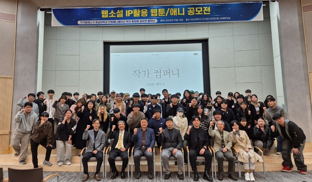 [대학저널 이선용 기자] 호남대학교 만화애니메이션학과는 11월 14일 웹소설 IP의 강자로 알려진 네이버 작가 컴퍼니와 협약식을 맺고, 제 2회 총장배 웹소설 IP 활용 웹툰/애니메이션 공모전 개최를 공식 발표했다.