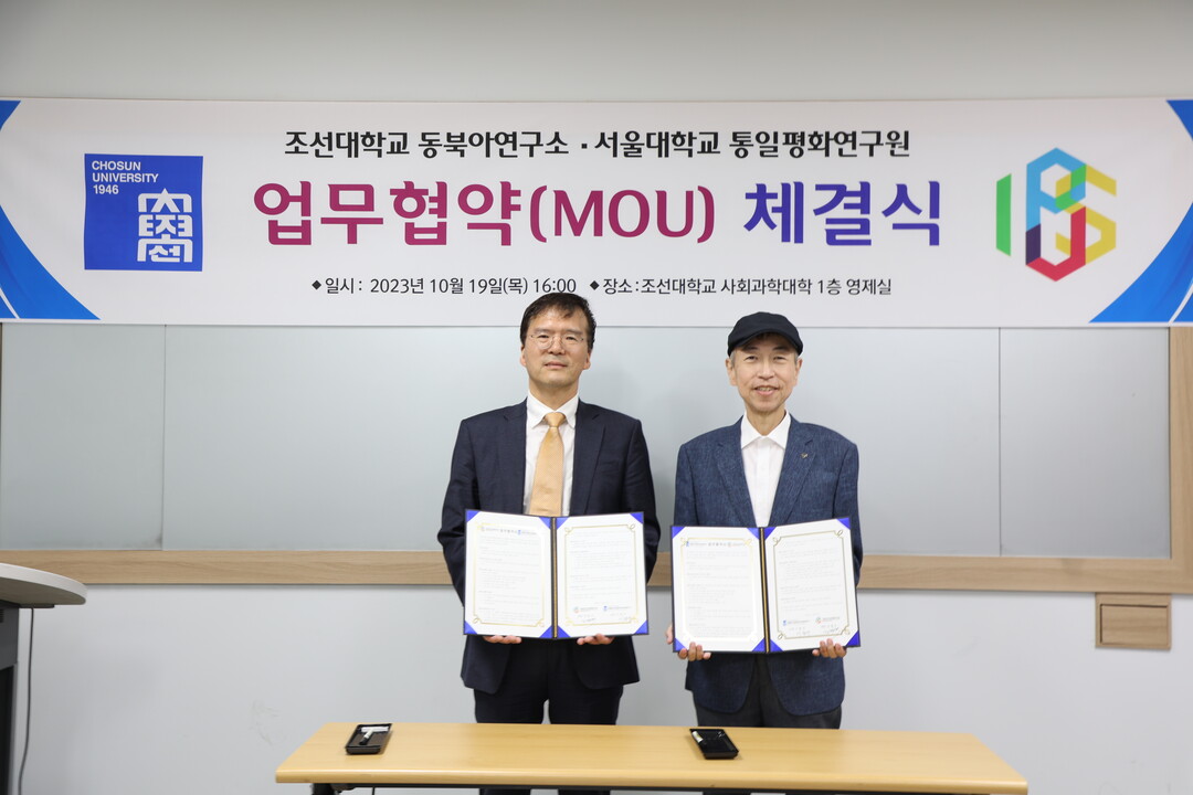 조선대학교 동북아연구소와 서울대 통일평화연구원의 업무협약식. 사진=조선대 제공 |