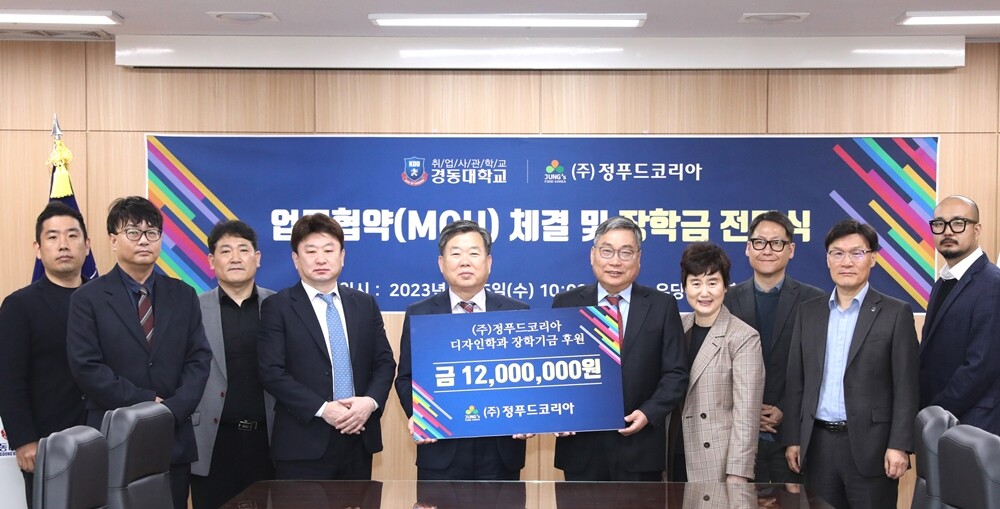 [대학저널 온종림 기자] 경동대는 5일 농수산과채 수입·유통 전문기업 정푸드코리아가 장학금 1200만원을 기탁했다고 밝혔다.