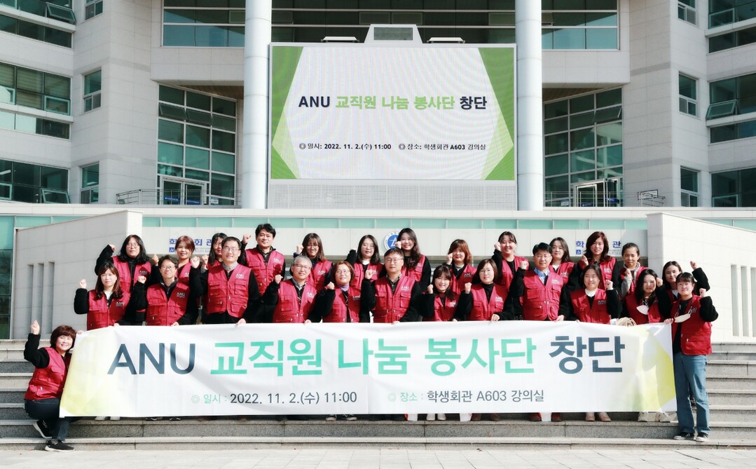 ANU 교직원 나눔 봉사단은 사회봉사활동을 통해 지역민에 대한 대학의 사회적 책임을 다하고, 지속적인 봉사활동을 하기 위해 구성됐다.