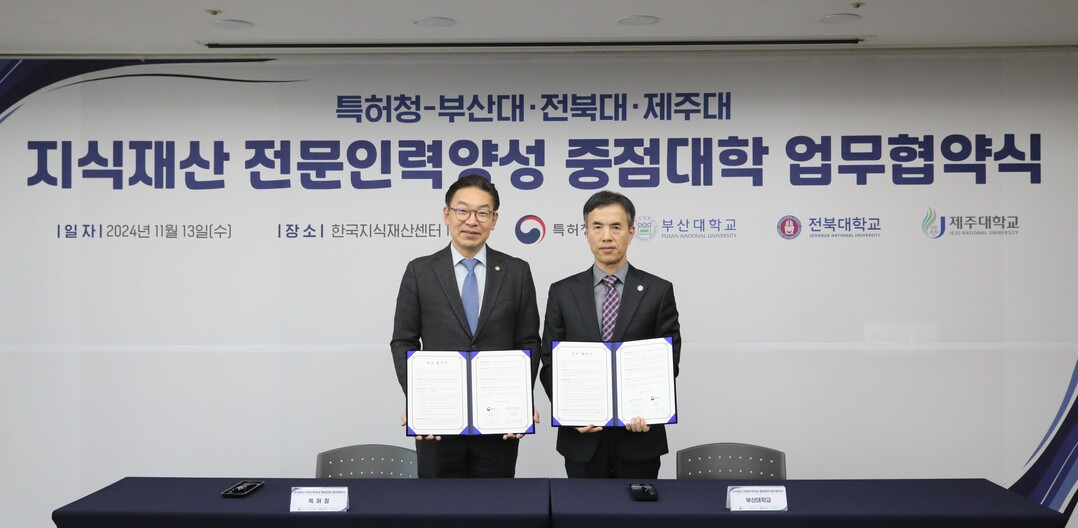[대학저널 이선용 기자] 부산대학교는 특허청이 지원하는 ‘지식재산 전문인력양성 중점대학사업’의 동남권 거점대학에 선정돼 11월 13일 오후 특허청 서울사무소에서 업무협약을 체결했다고 14일 밝혔다.