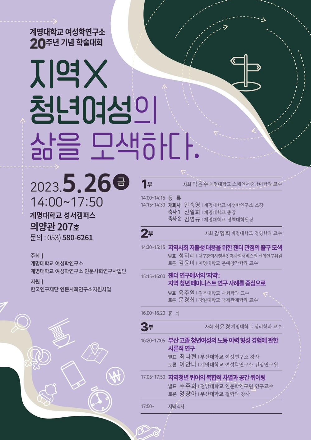 안숙영 계명대 여성학연구소장은 “지역은 청년 여성들이 살아가는 삶의 공간임과 동시에 이들의 경험이 만들어지고 구성되는 장소”라며 “이번 학술대회는 지속적인 페미니즘 실천을 위해 지역의 청년 여성들이 어떤 노력을 기울이고 있는지를 ‘지역’과 ‘젠더’가 연결되는 지점에서 파악해 볼 좋은 기회가 될 것”이라고 설명했다.