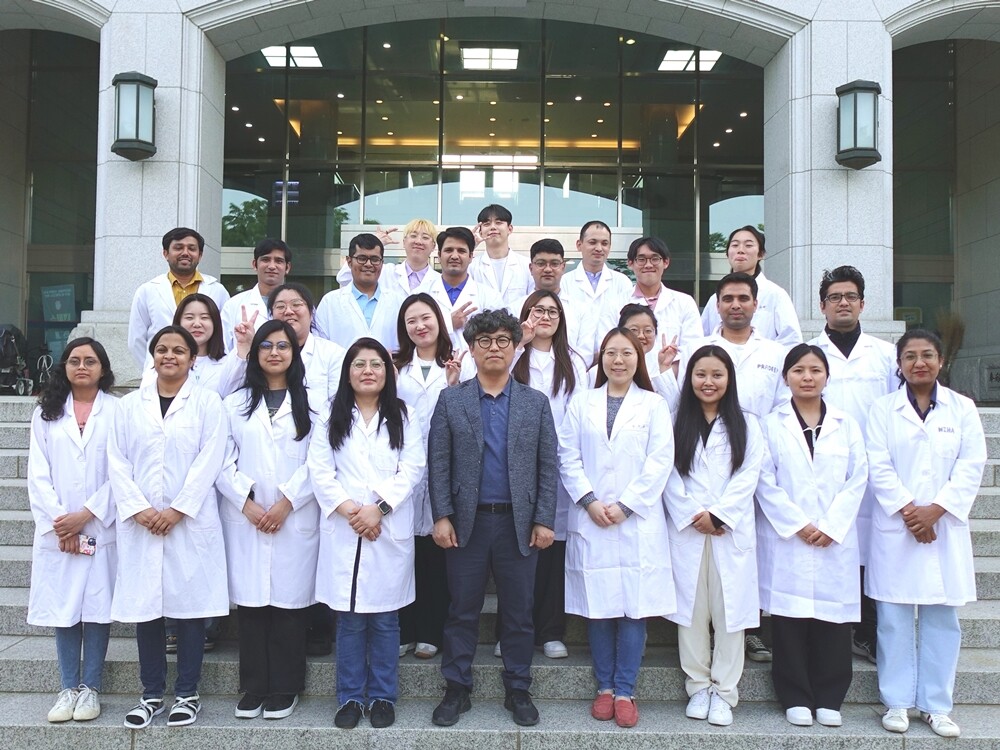 선문대 오태진 교수와 연구원들이 기념촬영을 하고 있다. 사진=선문대 제공 |
