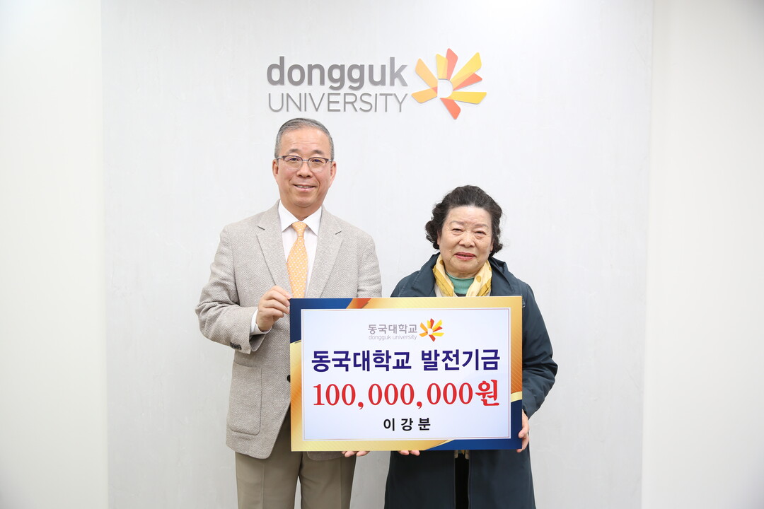 동국대는 12일 이강분 할머니가 동국대를 찾아 학생들을 위한 장학금으로 써달라며 1억 원을 기부했다고 밝혔다.