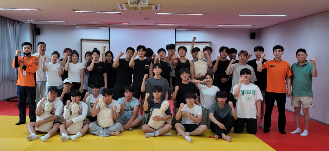 인천강화소방서는 같은 기간 ‘아웃도어 스포츠’ 수업에서 재학생을 대상으로 ‘심폐소생술 및 응급처치’ 파견 교육을 실시하였다.