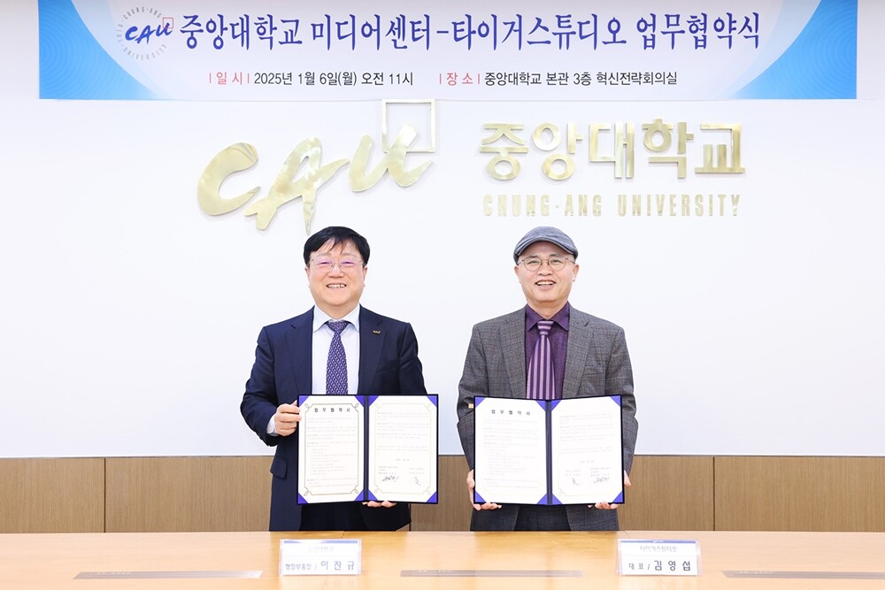 김영섭 타이거 스튜디오 대표는 “사학 명문 중앙대와 업무협약을 맺게 돼 기쁘다. 학생들의 열정과 창의력을 바탕으로 새로운 비전을 제시하고, 콘텐츠 산업을 강화하는 좋은 결과가 나올 수 있도록 지원을 아끼지 않겠다”고 말했다.