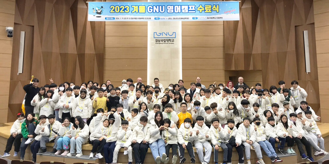 [대학저널 이선용 기자] 경상국립대학교 국제어학원이 1월 19일 오전 9시 30분 가좌캠퍼스 국제어학원 파이오니어 오디토리엄에서 ‘2023 겨울 GNU 영어캠프 수료식’을 개최했다.
