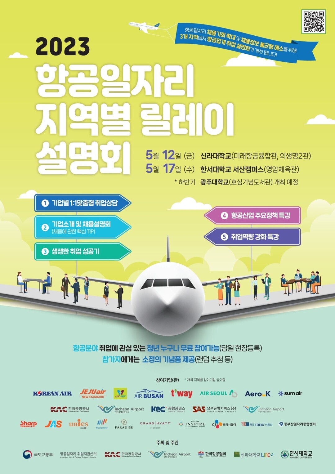 [대학저널 온종림 기자] 신라대학교는 항공 관련 업계 취업을 희망하는 청년을 대상으로 2023년 항공일자리 지역별 릴레이 설명회를 오는 12일 연다고 8일 밝혔다.