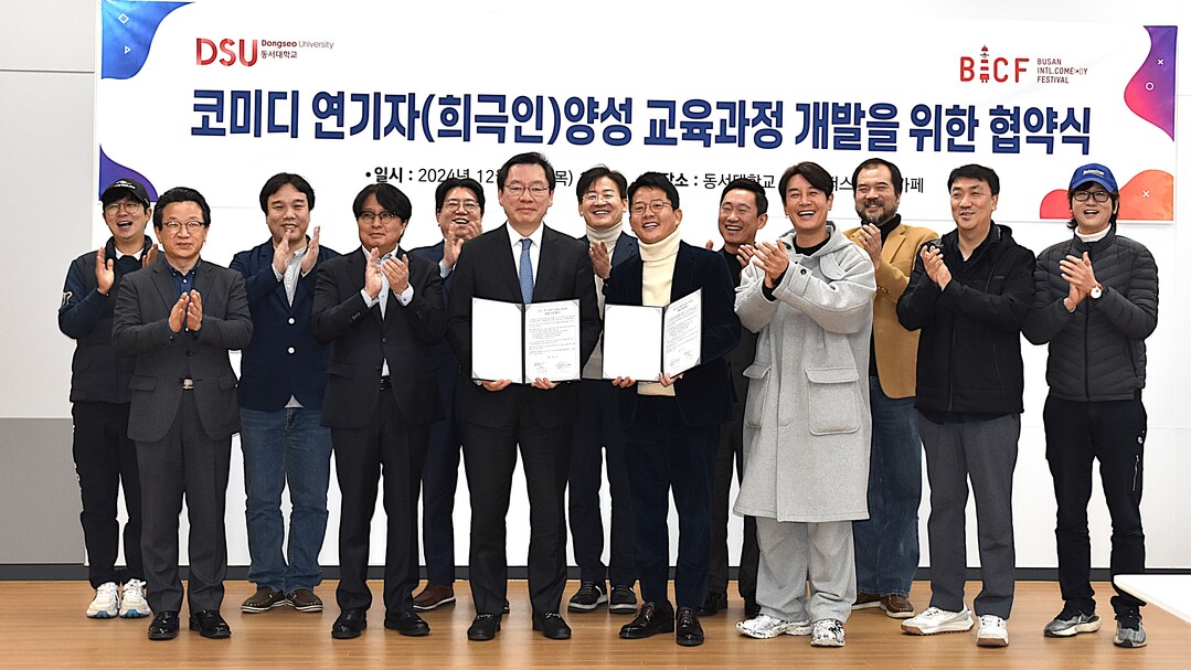 [대학저널 이선용 기자] 동서대학교는 12월 12일 오후 4시 동서대 센텀캠퍼스에서 (사)부산국제코미디페스티벌조직위원회와 ‘BICF-동서대 코미디 연기자 양성 교육과정 개발’을 위한 업무협약을 체결했다고 13일 밝혔다.