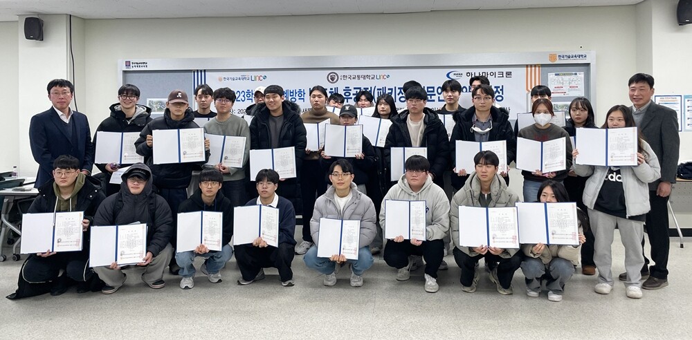 한기대 LINC 3.0 사업단이 16일 2023학년도 동계방학 ‘반도체 후공정 전문인력 양성과정’ 수료식을 진행했다. 사진=한기대 제공 |
