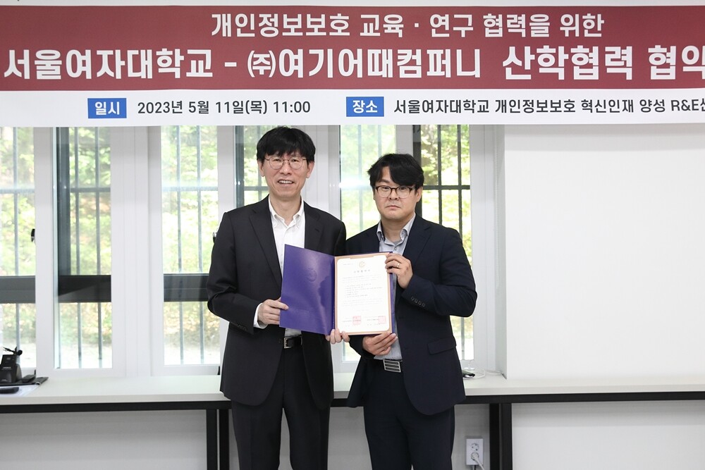 [대학저널 온종림 기자] 서울여자대학교는 지난 11일 여기어때컴퍼니와 산학협력 MOU를 체결하고 개인정보보호분야 교육과 연구 협력을 통한 개인정보보호 전문 인력 양성에 힘을 모으기로 했다고 12일 밝혔다.