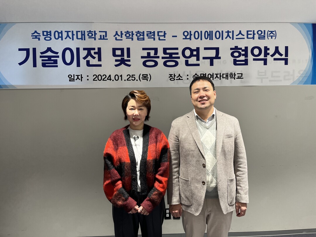 숙명여대 산학협력단은 1월 25일 서울 용산구 숙명여대에서 임호선 교수, 김영희 와이에이치스타일 대표 등이 참여한 가운데 ‘기술이전 및 공동연구 협약식’을 개최했다.