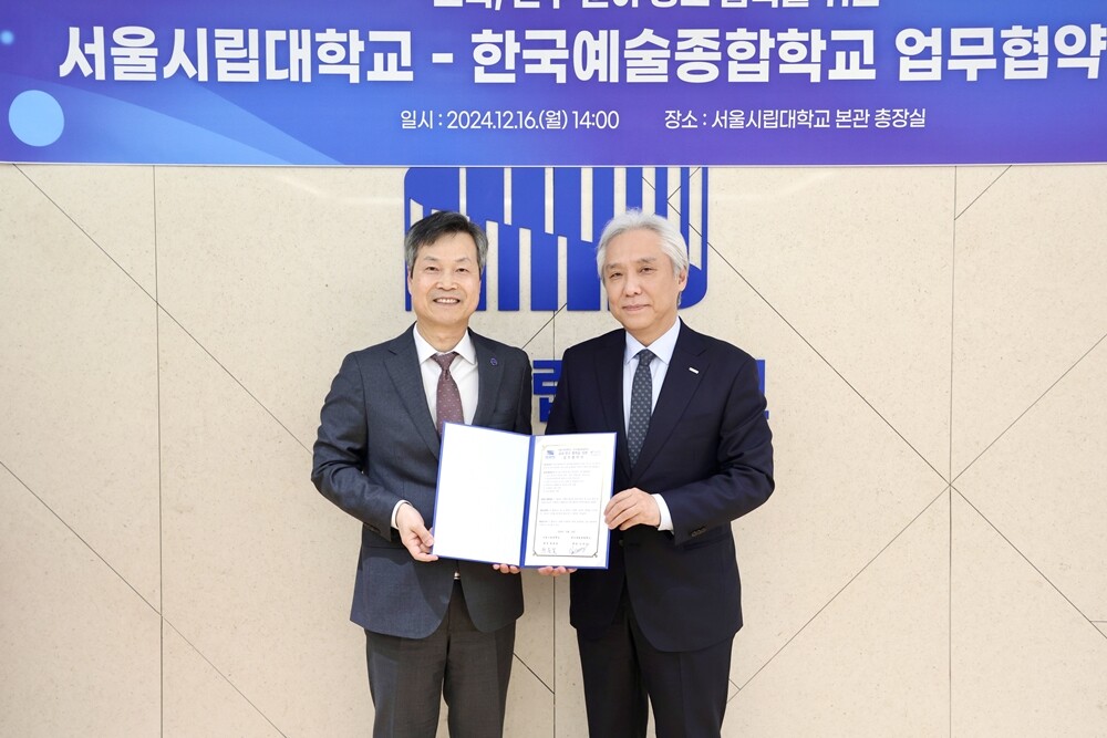 서울시립대 원용걸 총장은 “이번 협약을 통해 서울시립대와 한국예술종합학교가 교육과 연구 협력을 위한 견고한 기반을 마련하고, 이를 통해 양 대학의 교육 및 연구 역량이 한층 강화되기를 기대한다”고 밝혔다.