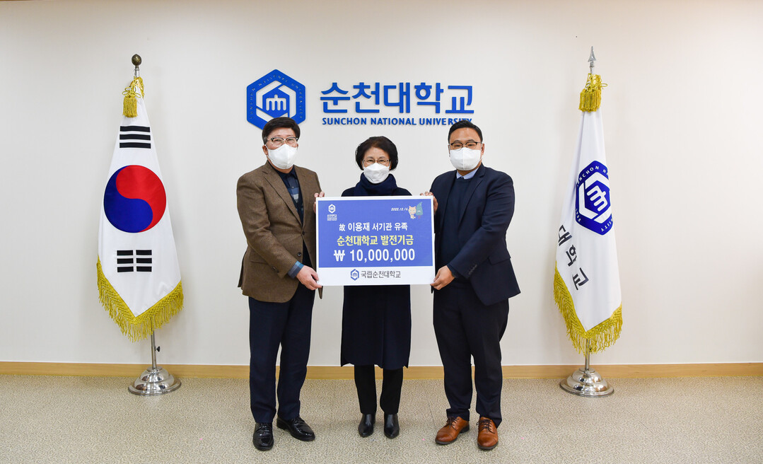[대학저널 온종림 기자] 순천대학교는 교무가장 등을 지낸 고(故) 이용재 서기관의 유족 김효순씨와 아들 정원씨가 ‘이용재 장학금’ 1000만원을 기탁했다고 23일 밝혔다.