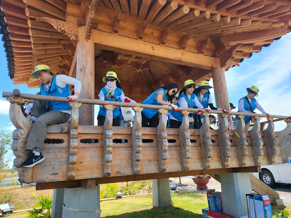 특히, 베트남에 파견된 봉사팀은 특별한 활동을 전개했다. 지난해 전북대에서 퀴논시에 수출한 전통 정자를 관리하기 위해 전북대 학생, 베트남 학생들이 한옥 전통 정자의 목재 표면을 매끈하게 다듬고 도장했다. 전통 정자 정비 후 한옥 앞에서 지역 주민들과 합동공연을 펼치기도 했다.