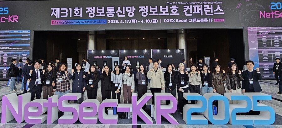 성신여대 융합보안공학과 CSE Lab이 ‘제31회 정보통신망 정보보호 컨퍼런스(NetSec-KR 2025)’에 참여해 기념사진을 촬영하고 있다. 사진=성신여대 제공 |