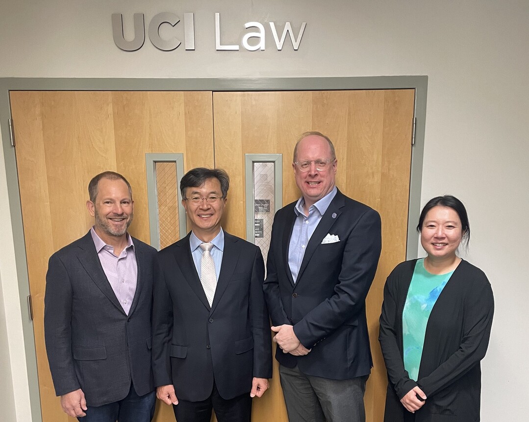 왼쪽부터 크리스토퍼 화이톡 UCI 로스쿨 부학장, 이황 고려대 법학전문대학원장, 오스틴 패리쉬 UCI 로스쿨 학장, 김성은 UCI 한국법센터장. |