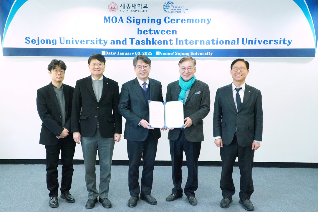 [대학저널 이선용 기자] 세종대학교는 지난 1월 3일 교내 집현관 10층 소회의실에서 우즈베키스탄 Tashkent International University와 2+2 복수학위 협정(MOA)을 체결했다고 10일 밝혔다.