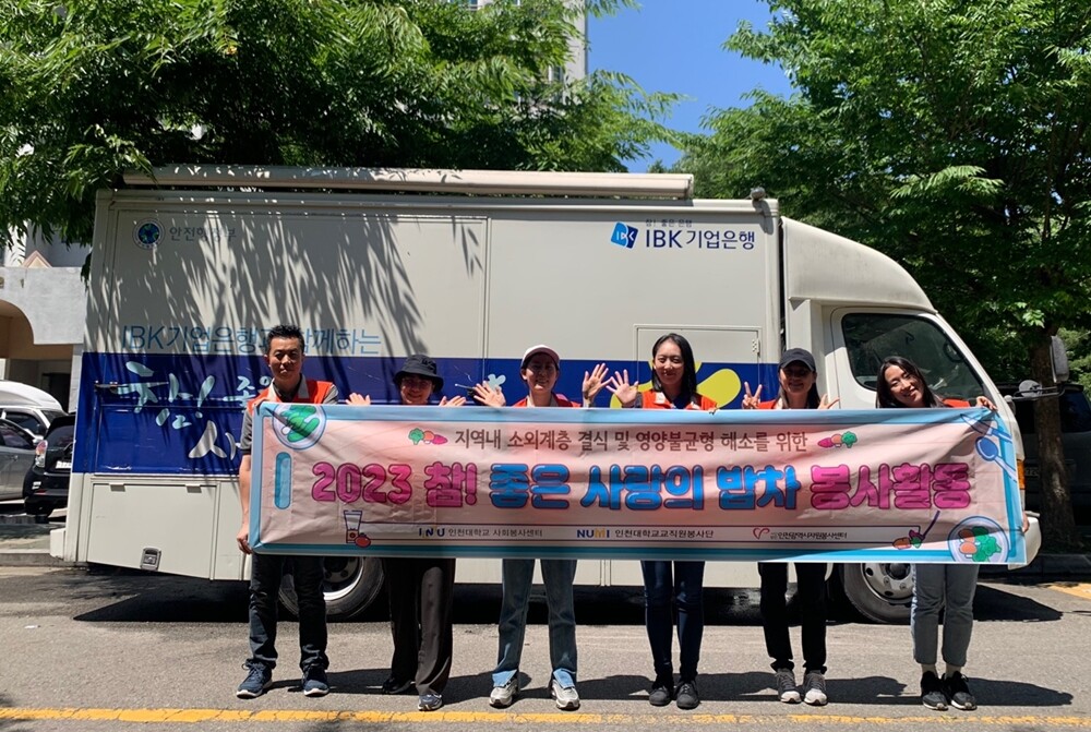 참! 좋은 사랑의 밥차 사업은 인천광역시자원봉사센터가 주관한 무료급식 봉사활동으로 인천대 교직원 봉사단 6명 등 56명의 봉사단이 무료급식 배식 봉사활동을 펼쳤다.
