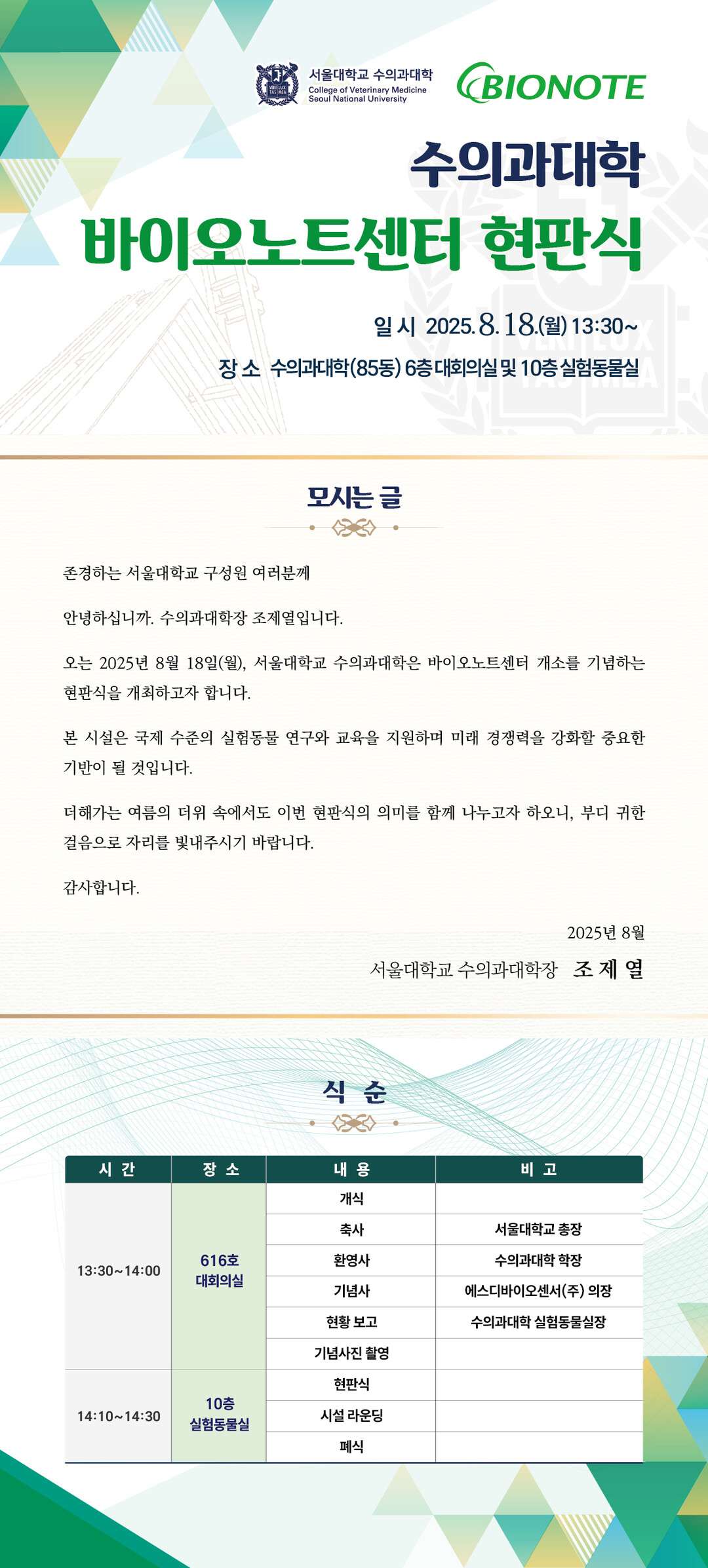 서울대 수의과대학 ‘바이오노트센터’ 현판식 포스터. |