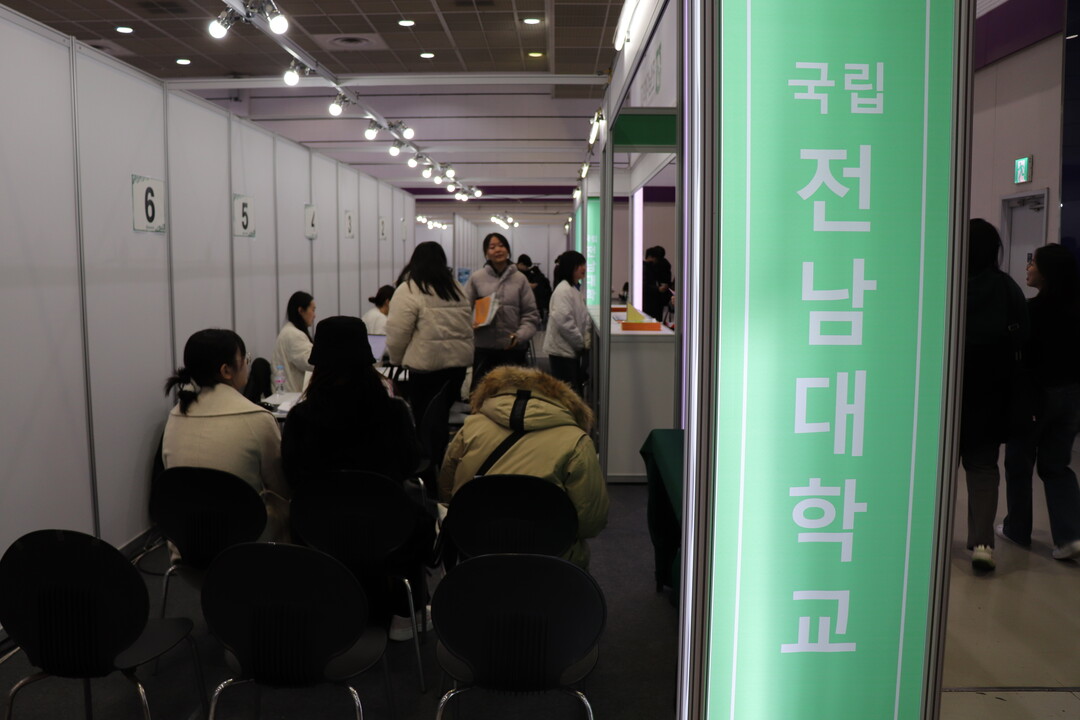 사진은 전남대학교 부스에서 입시 상담을 받고 있고 있는 수험생들의 모습이다.