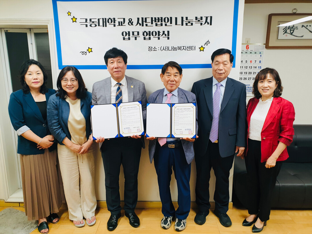 [대학저널 이선용 기자] 극동대학교가 사회복지학과와 함께 (사)나눔복지, ㈜금쪽이케어와 ‘지역사회 봉사 및 복지전문인력 양성’을 위한 업무협약을 체결했다.