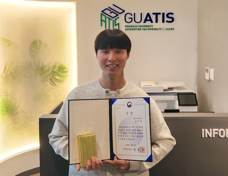 김지웅 학생은 한국생산성본부 인증 ERP 마스터 자격을 보유하고 있으며, 2024년에는 광주국세청 ‘세무도우미 재능기부’ 활동 및 ‘국세행정 우수 개선 의견’으로 광주국세청장상을 수상한 바 있다.
