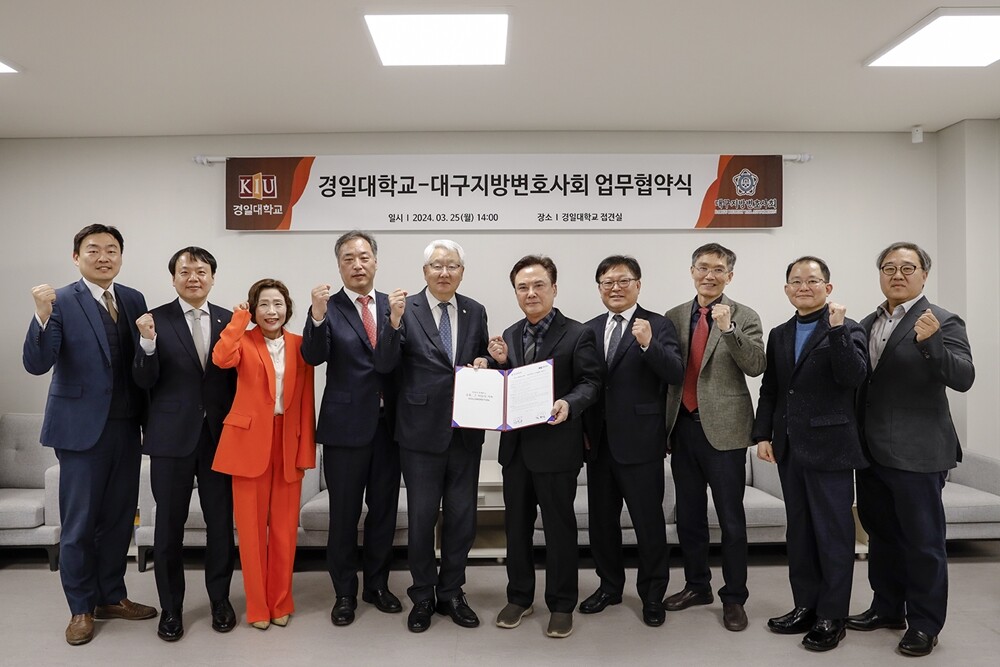 협약식에는 정현태 경일대 총장과 홍재표 부총장, 김용호 경일대 디지털포렌식 과학수사 센터장, 김동혁 경일대 범죄피해자연구소장, 경찰학과 오태원 교수, 이정원 경일대 고문 변호사가 참석했으며 대구지방변호사회는 강윤구 회장과 도정환 제1부회장, 김계희 제2부회장, 권중한 총무이사 등이 참석했다.