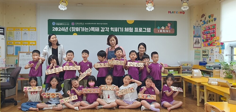 전북대 목재가공지원센터가 지역민과 지역 어린이집 등을 찾아 목공예 체험교실을 운영하고 있다. 사진=전북대 제공 |