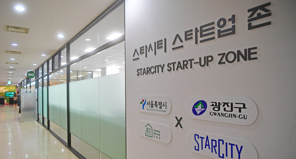 ‘스타시티 START-UP ZONE’은 2호선과 7호선이 만나는 건대입구역 번화가에 위치한 스타시티몰 상가에 조성된 창업지원시설이다. 서울시에서 비용을 지원하고 학교법인 건국대에서 공간을 제공했다.