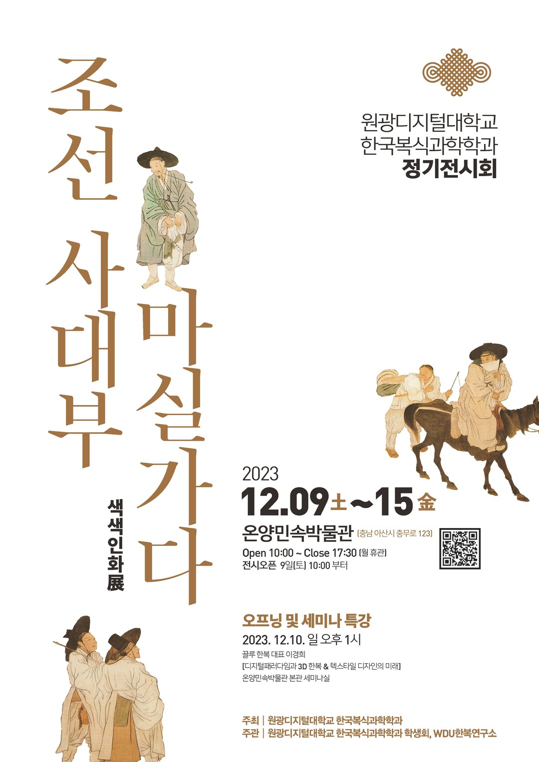 이번 전시회는 원광디지털대학교 한국복식과학학과 13대 총학생회에서 주관해 ‘조선 사대부 마실 가다’라는 주제로 17세기 영·정조 시대의 유물과 자료를 기반으로 외출복으로서의 기능을 가진 평상복을 연구 및 재현했다.