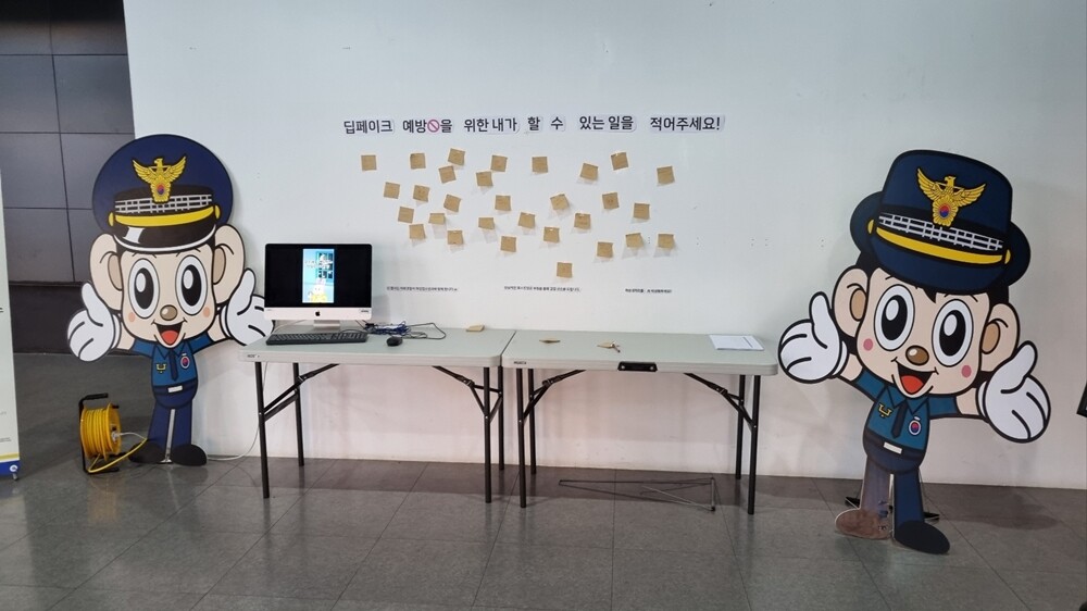 전시는 딥페이크 범죄 예방 포스터 전시, 디지털 범죄 예방 동영상 안내, ‘딥페이크 범죄 예방을 위해 내가 할 수 있는 일’이라는 주제로 참여자들이 포스트잇에 의견을 적는 참여형 존으로 구성됐다.